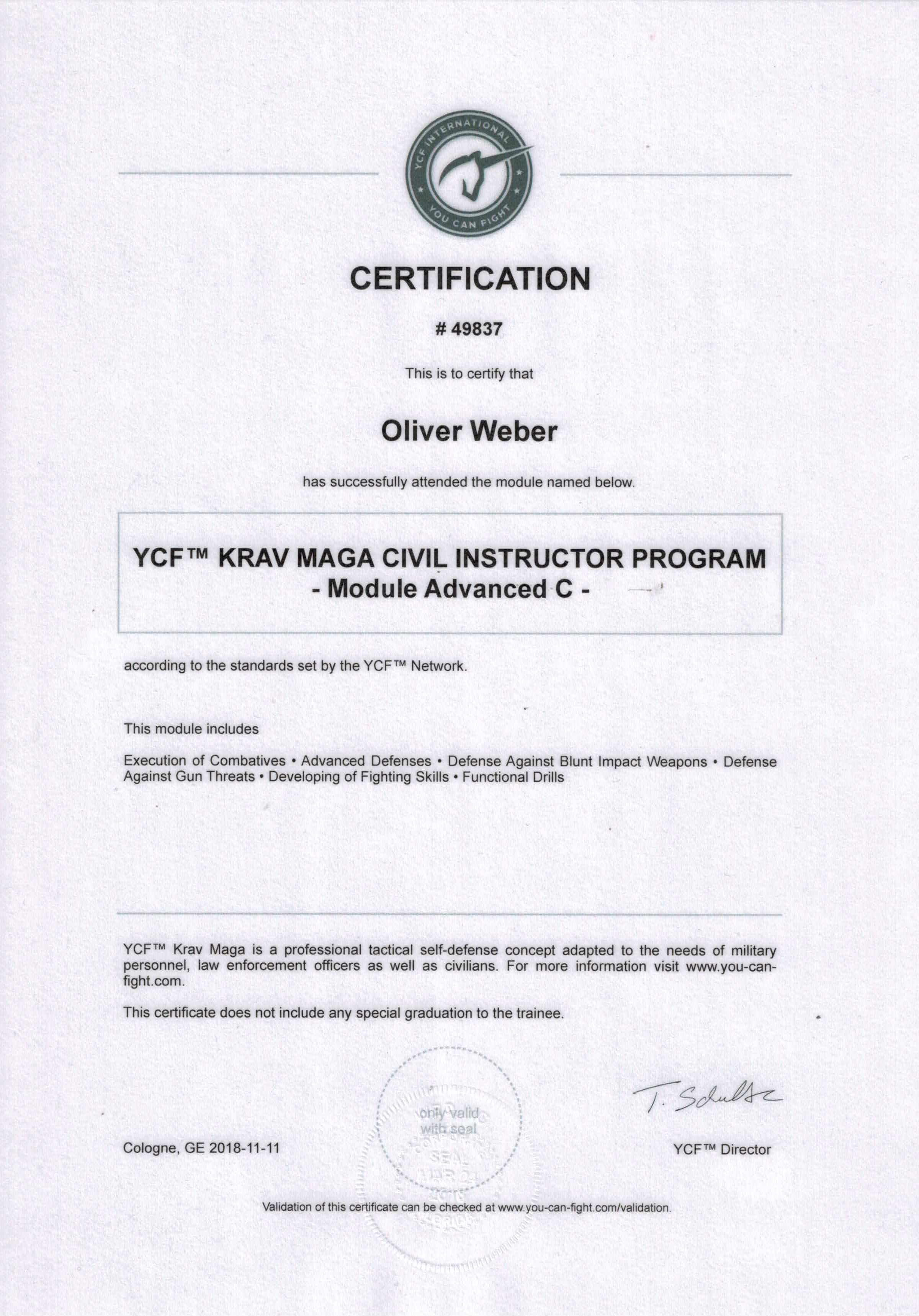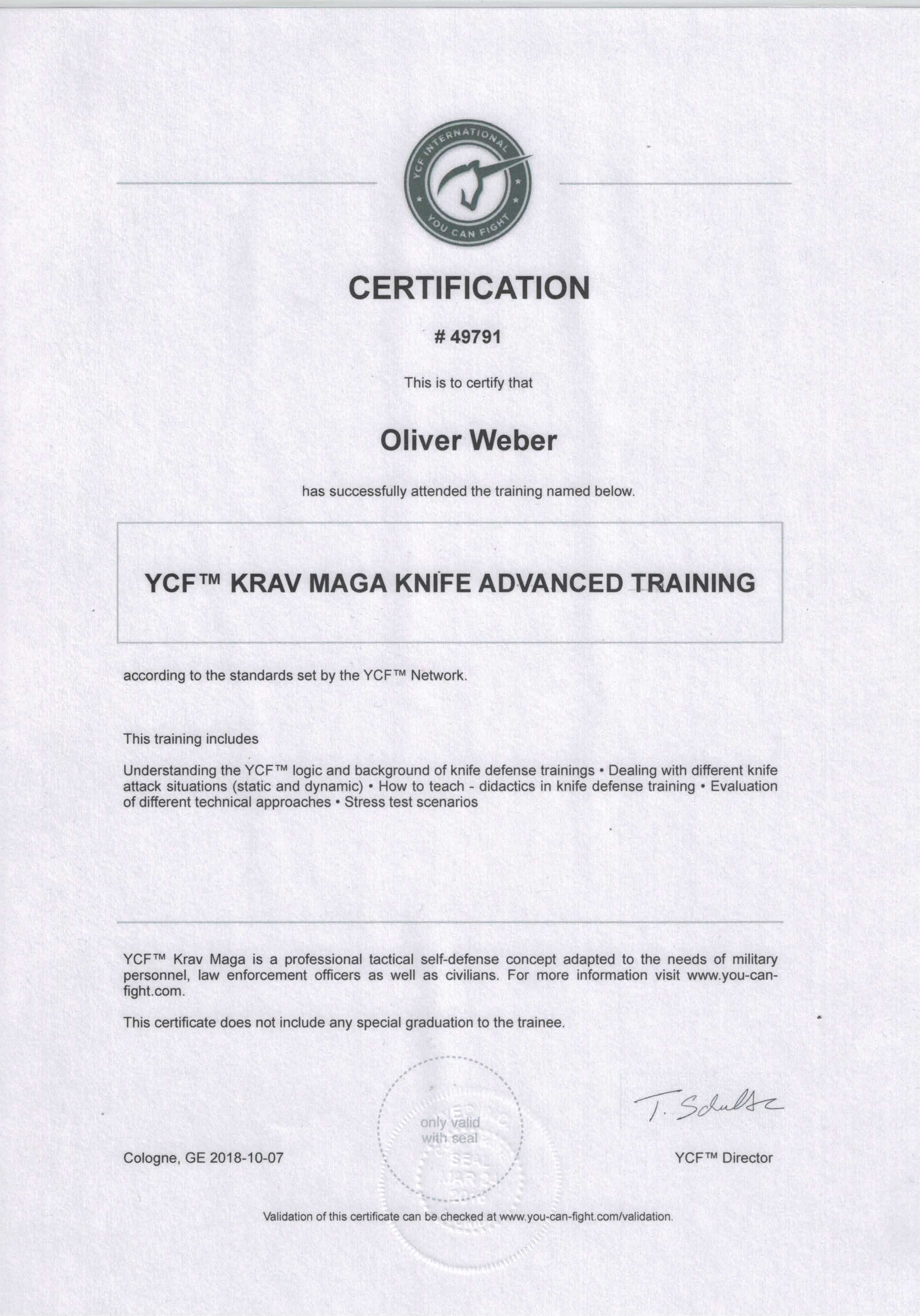 Dieser Bereich umfasst meine offiziellen Krav-Maga-Zertifikate und dokumentiert meine Qualifikation als Instructor im zivilen und behördlichen Selbstschutz.